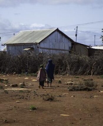 UNICEF/Said Fadhaye Deux jeunes filles traversent un camp de déplacés dans le sud de la …