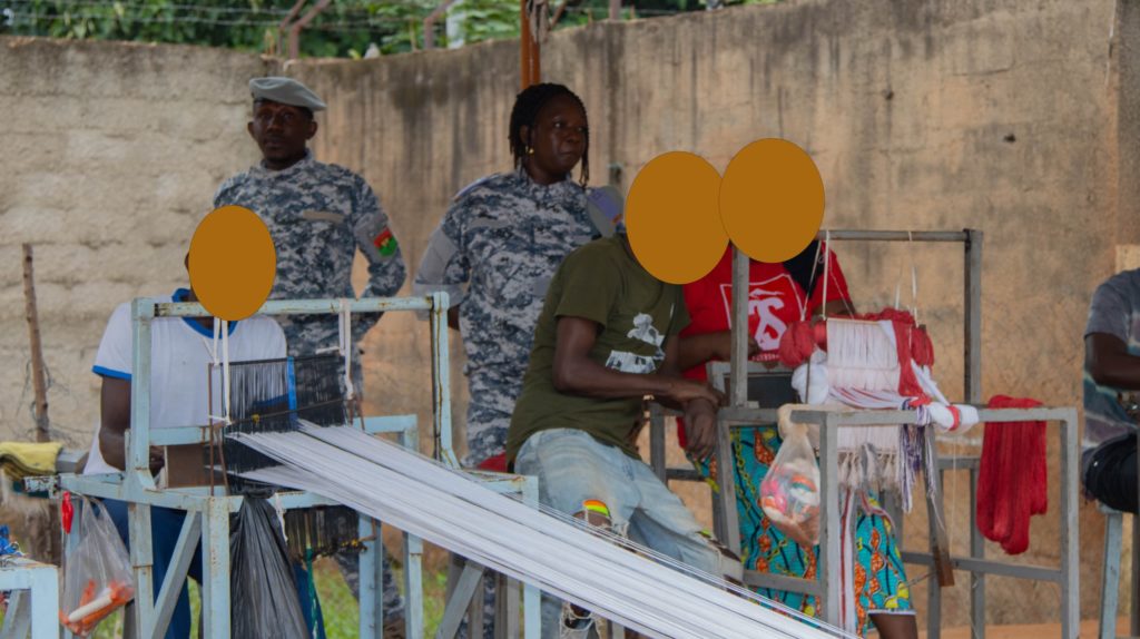 Ce vendredi matin, l’atelier de tissage de la MAC-B est en pleine effervescence. Vingt détenus, formés par l’IPDC, s’activent à la réalisation des célèbres pagnes traditionnels. L’apprentissage, jugé difficile au départ, devient vite une passion, comme en témoigne A. G., détenue depuis 2018 : « En un mois, on peut commencer à tisser. C’est très intéressant ».