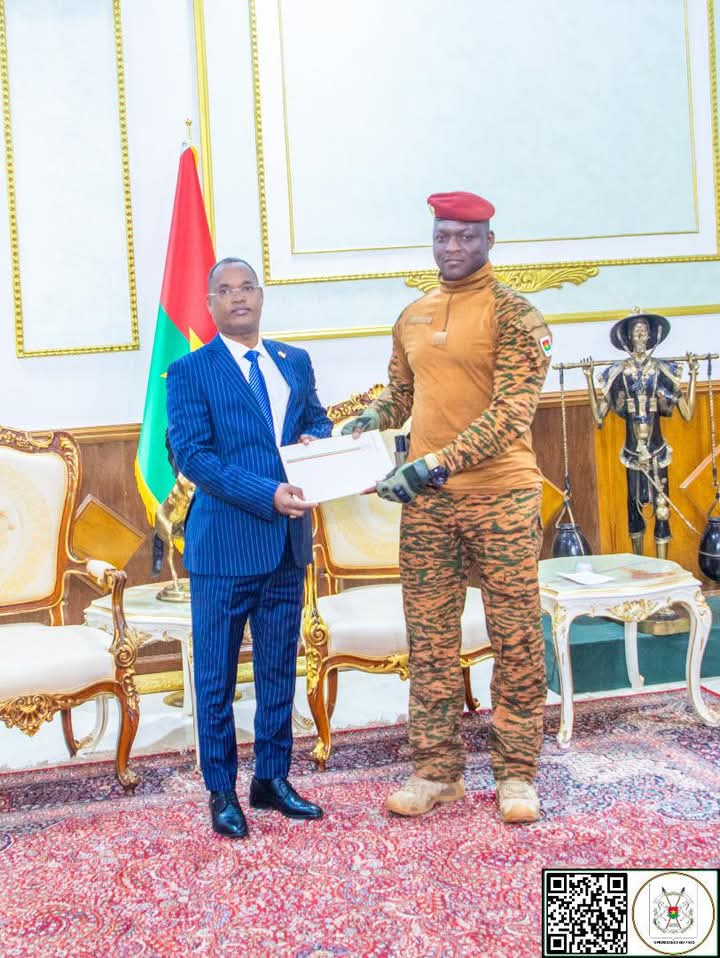Le Président du Faso, le Capitaine Ibrahim Traoré, a accueilli ce jeudi 19 décembre 2024, les lettres de créance de cinq nouveaux ambassadeurs accrédités auprès du Burkina Faso, renforçant ainsi les relations diplomatiques avec des pays amis.