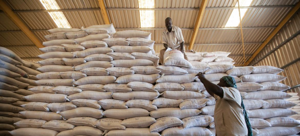 © UN Photo/Albert Gonzalez Farran – Des employés du PAM chargent des sacs de nourriture …